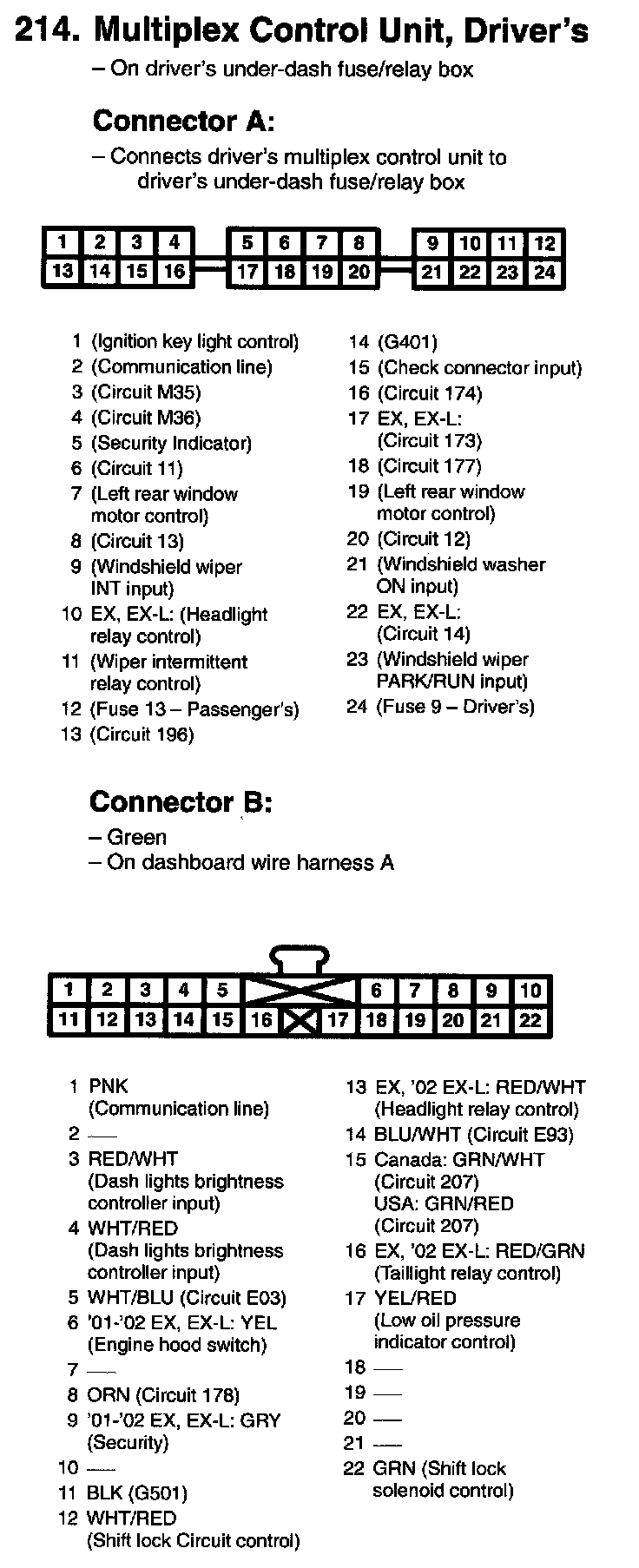 214. Multiplex Control Unit, Driver's Connector A, B: