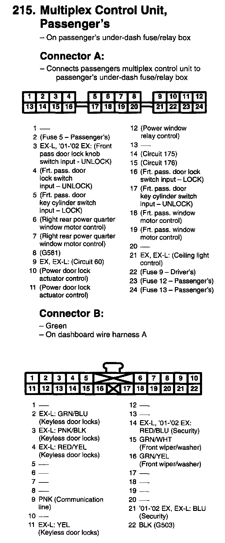 215. Multiplex Control Unit, Passenger's Connector A, B:
