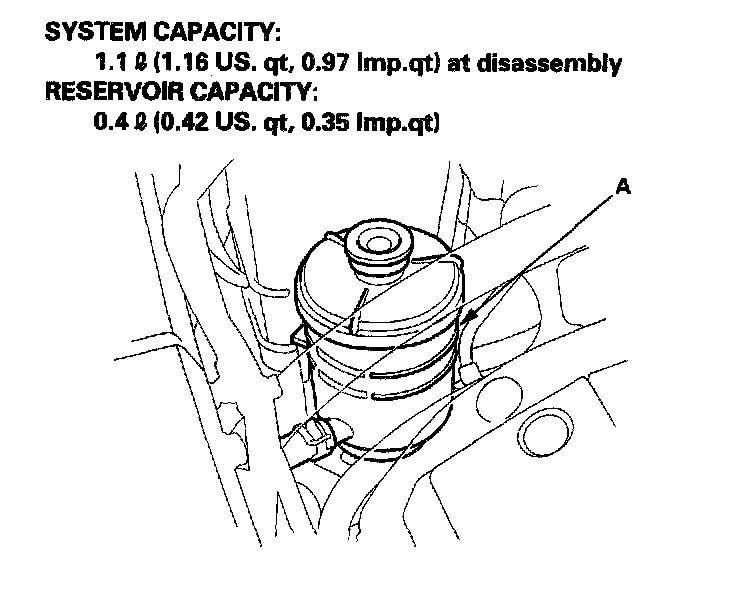 ReplacementCheck the reservoir (A) at regular intervals, and add the recommended fluid as necessary. Always use Honda Power Steering Fluid. Using any other type of power steering fluid or automatic transmission fluid can cause increased wear and poor steering in cold weather.
