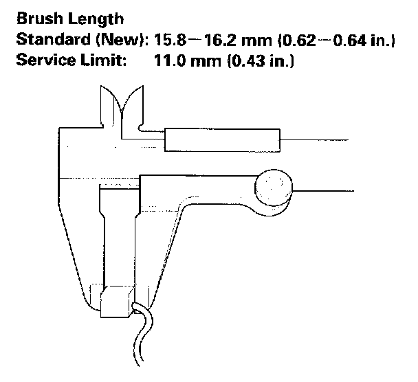 11. Measure the brush length. If it is not within the service limit, replace the brush holder assembly.