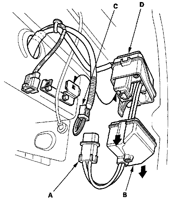 3. Remove the air pump electrical current sensor (D).