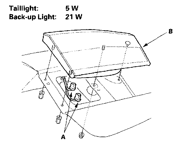 2. Remove the three nuts and the inner taillight (B).