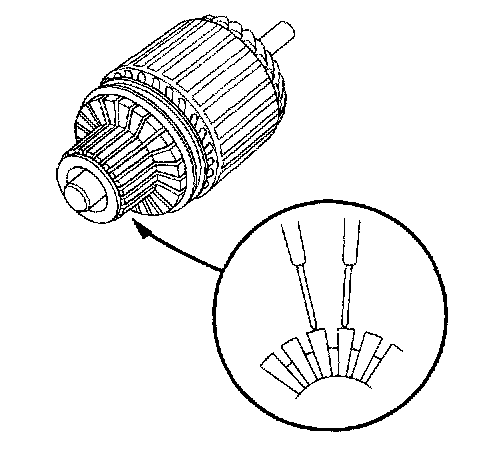 8. Check for continuity between the segments of the commutator. If an open circuit exists between any segments, replace the armature.