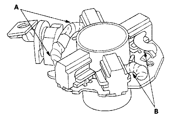 12. Check that there is no continuity between the (+) brush (A) and (-) brush (B). If there is continuity, replace the brush holder assembly.