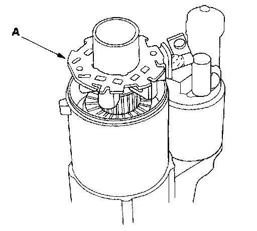 21. Place the brush holder assembly on the armature, then move the brush holder (A) down to the armature.
