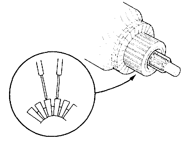 11. Check for continuity between the segments of the commutator. If an open circuit exists between any segments, replace the armature.