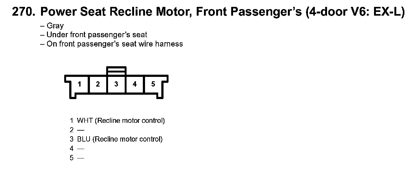 270. Power Seat Recline Motor, Front Passenger's (4-door V6: EX-L):