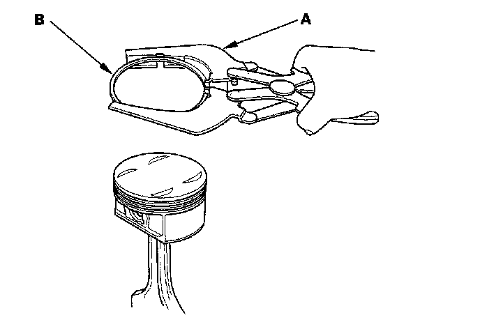 5. Measure the piston ring end-gap (B) with a feeler gauge: