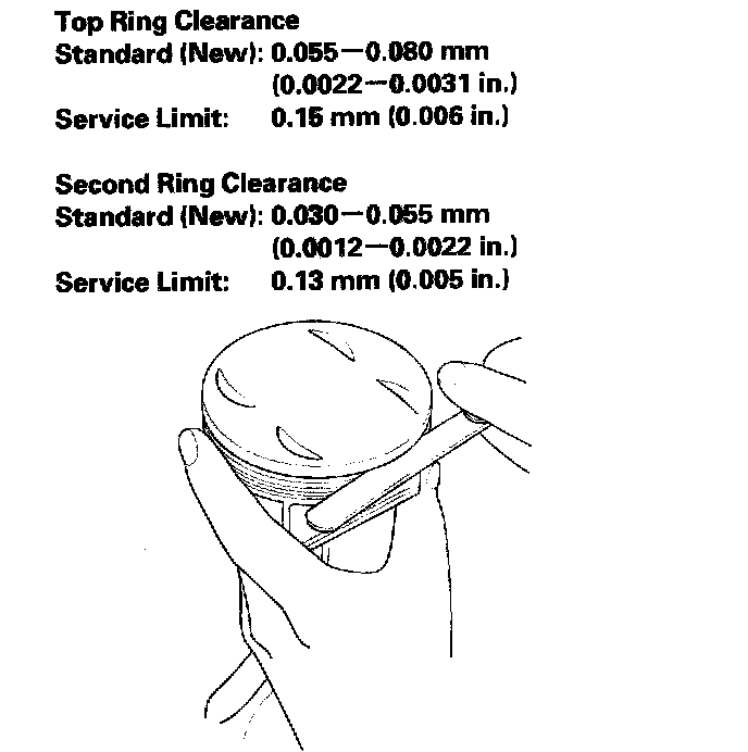 7. After installing a new set of rings, measure the ring-to-groove clearance.
