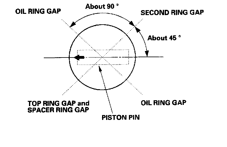 ^ If the gap is too large, recheck the cylinder bore diameter against the wear limits. If the bore is over the service limit, the engine block must be rebored.