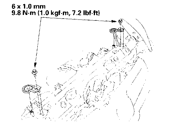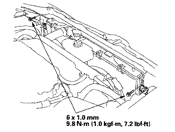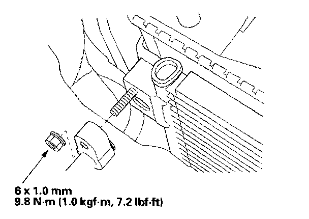 7. Remove the bolts and the radiator upper mount brackets.