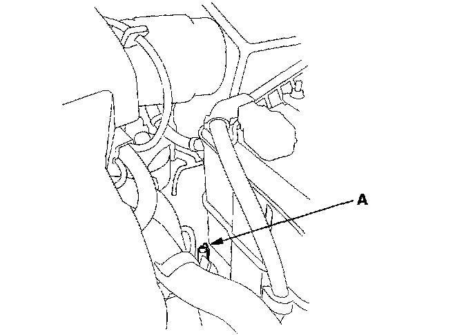9. If necessary fill the transmission through the dipstick guide pipe opening (A) to bring the fluid level up to about midway between the upper mark and lower mark of the dipstick with [1][2]ATF. Always use Honda ATF DW-1 (ATF-Z1 has been replaced with ATF DW-1, Honda Service News Nov 2010) Automatic Transmission Fluid (ATF). Using a non-Honda ATF can affect shift quality.