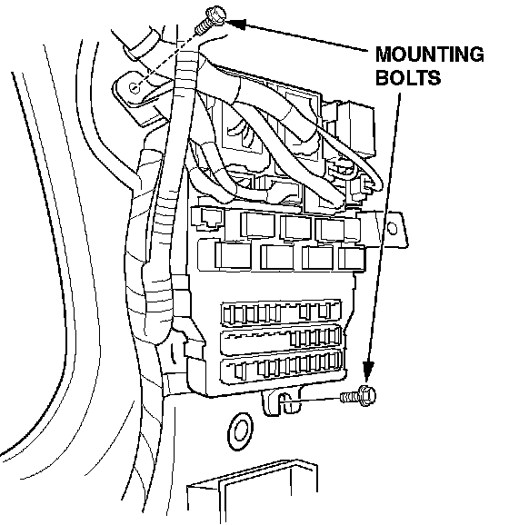 5. Remove the two mounting bolts from the under-dash fuse/relay box, then pull the fuse box away from the body.