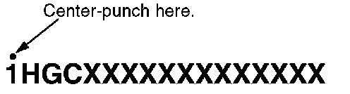 14. Center-punch a completion mark above the 1st character of the engine compartment VIN.