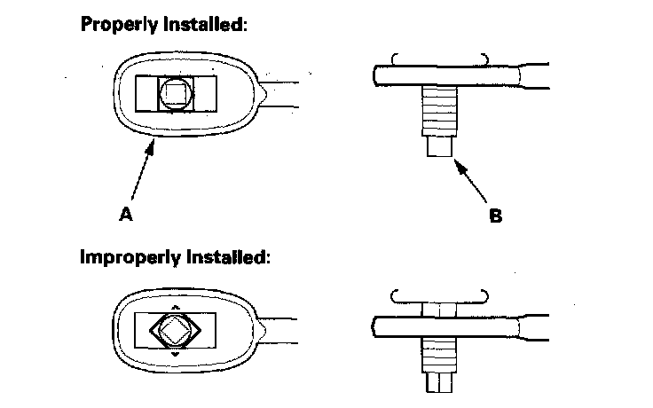 22. Verify that the shift cable end (A) is properly installed on the mounting stud (B).