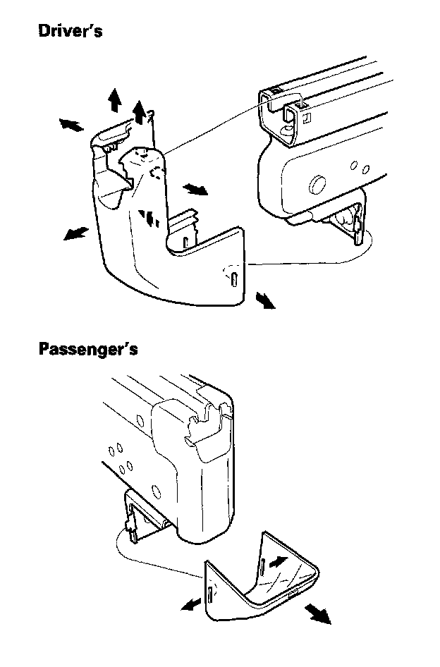 3. Remove the front seat track end covers from the front of both seat tracks.