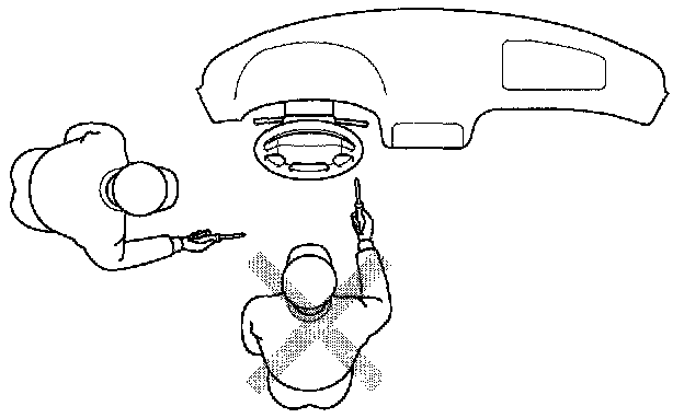 - Do not position yourself in front of the airbag assembly during removal, inspection, or replacement.