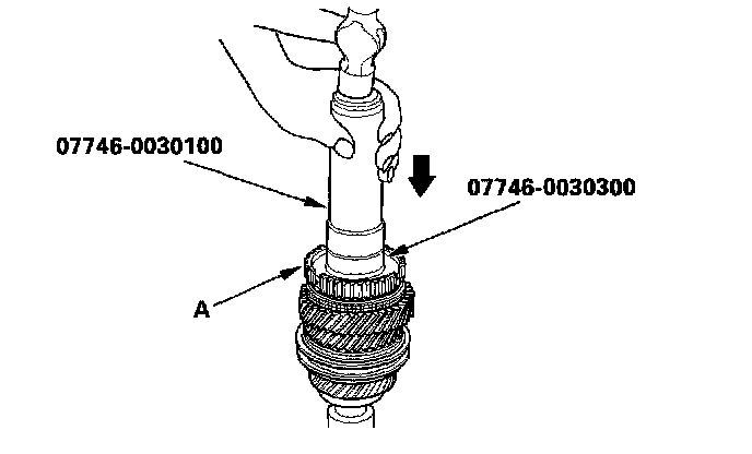 5. Install the 3rd/4th synchro hub (A) using the special tool.