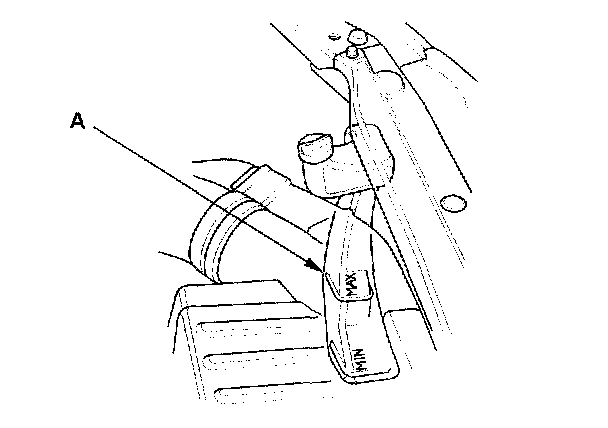 14. Fill the reserve tank to the MAX mark (A) with Honda All Season Antifreeze/Coolant Type 2.