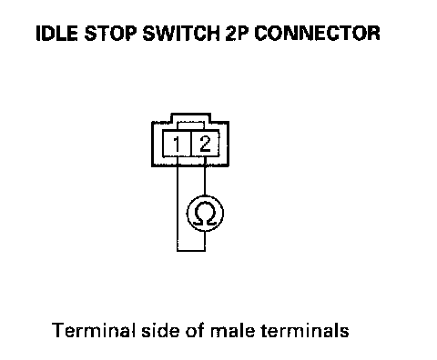 17. Check for continuity between idle stop switch 2P connector terminals No.1 and No.2.