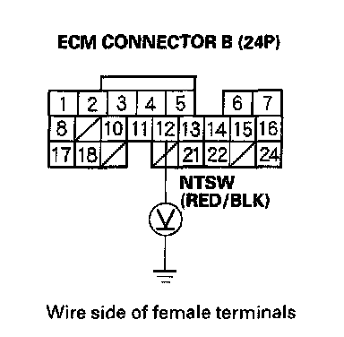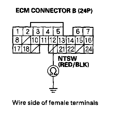 13. Check for continuity between ECM connector terminal B12 and body ground.