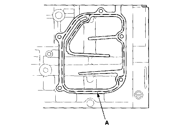 2. Apply a 1.5 mm wide bead of the liquid gasket, P/N 08718-0009, along the broken line (A).
