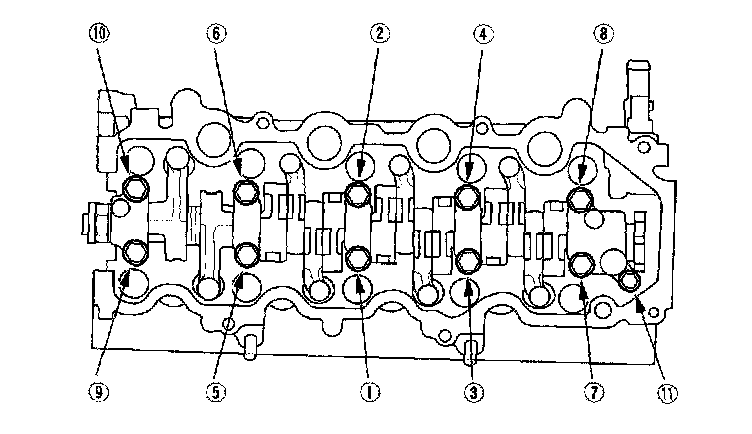 Apply engine oil to the bolt threads and flange. Tighten each bolt two turns at a time in sequence.
