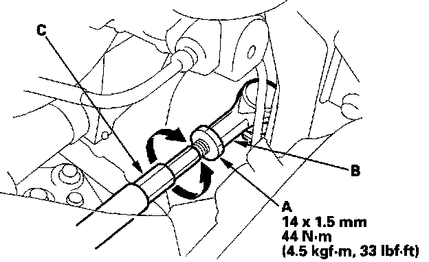 NOTICE: Do not loosen the special bolts (C) on the lower arm to adjust the alignment.
