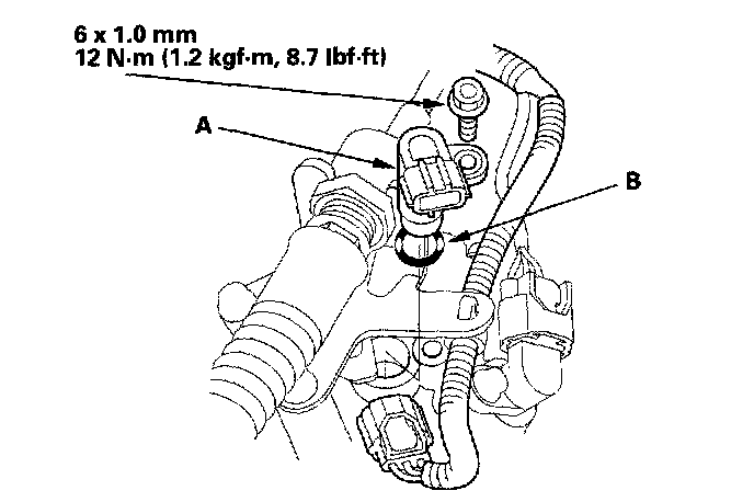 4. Install the new CVT speed sensor (secondary) with the new O-ring (B).