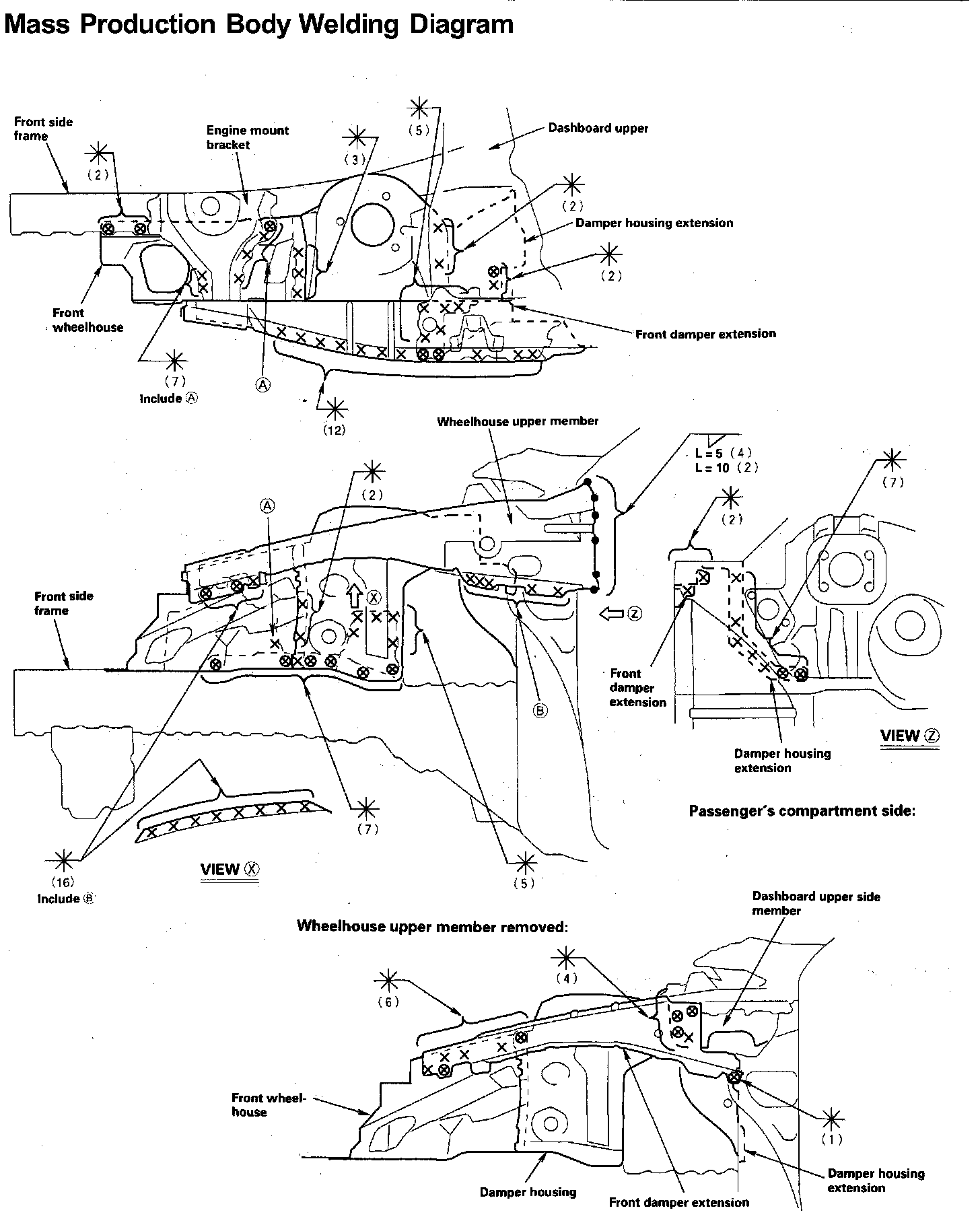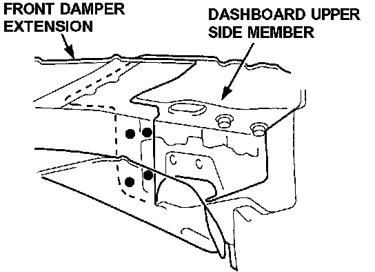 - From the passenger compartment side, plug weld the holes in the dashboard lower, damper housing extension, and front damper extension.