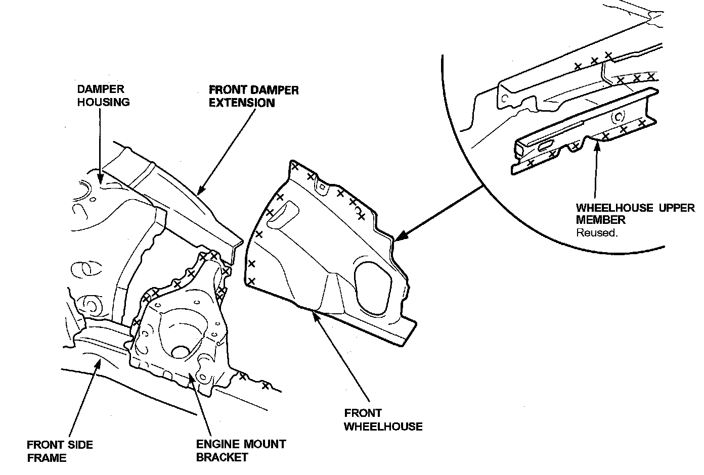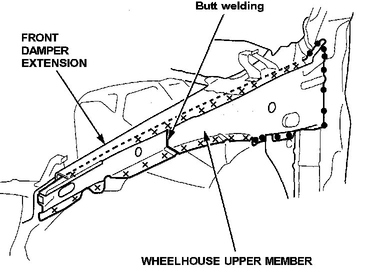 When replacing the front wheelhouse only, but weld the wheelhouse upper member.