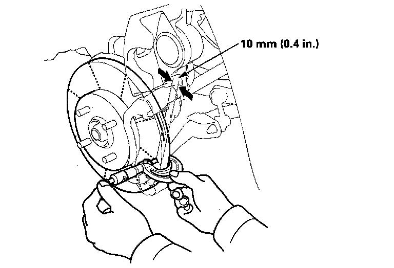 5. Set up the dial gauge against the brake disc as shown, and measure the runout at 5 mm (0.2 inch) from the outer edge of the disc.