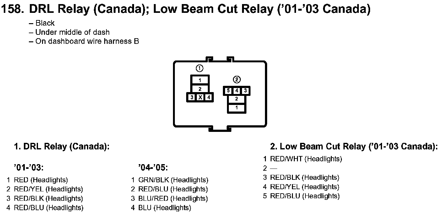 158. DRL Relay (Canada); Low Beam Cut Relay ('01-'03 Canada):