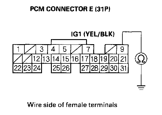 27. Check for continuity between PCM connector terminal E9 and body ground.