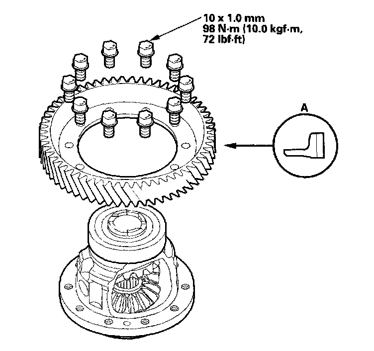 2. Install the final driven gear with the chamfered side on the inner bore (A) facing the differential carrier.