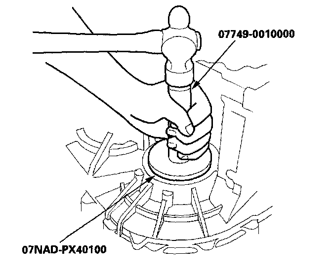 2. Install the new bearings with the special tool and a press. Press the bearing on until it bottoms.