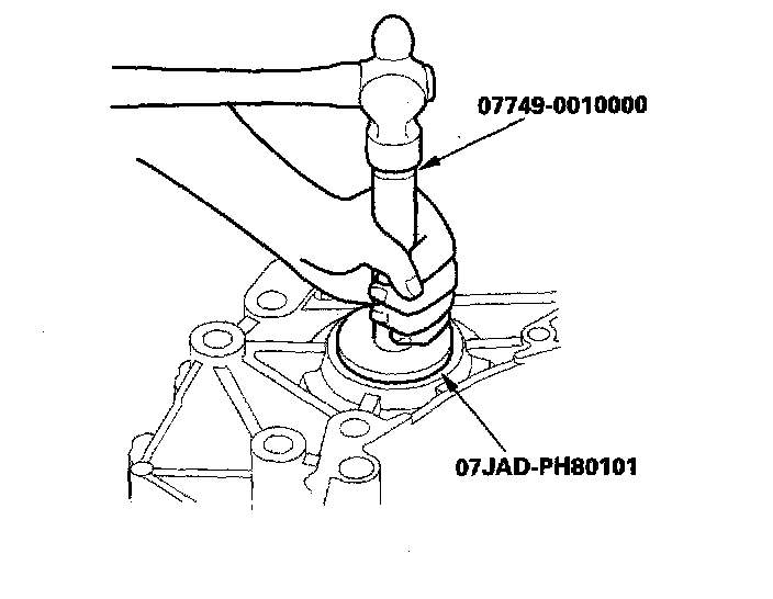 4. Install the oil seal (A) in the torque converter housing with the special tools.