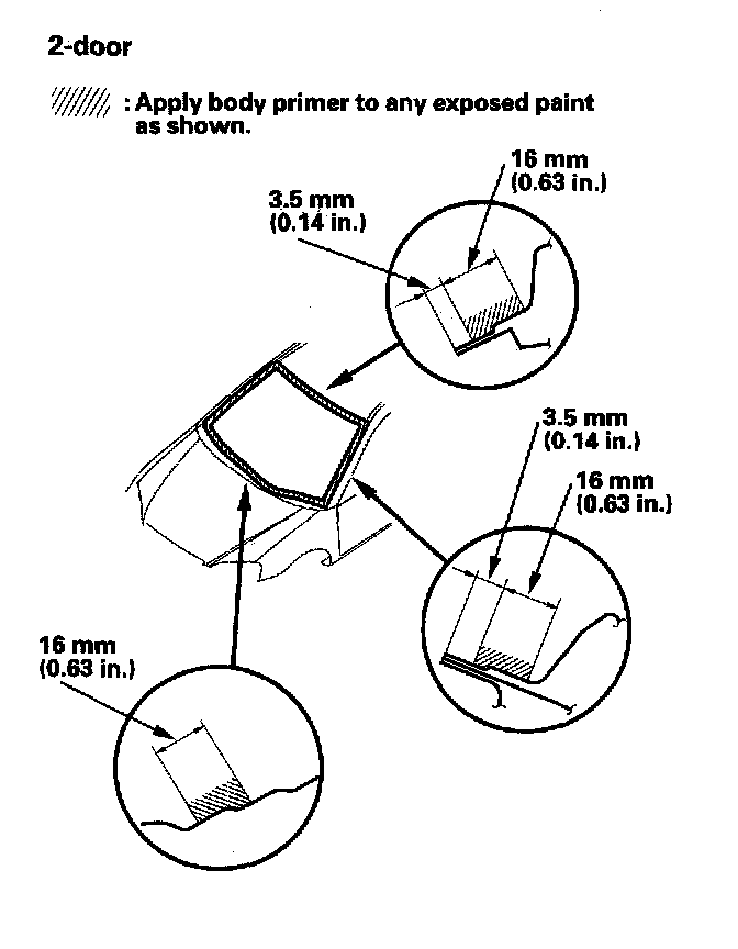 - Do NOT apply body primer to any remaining original adhesive on the flange.