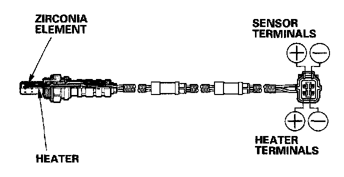 The primary HO2S detects the oxygen content in the exhaust gas and sends signals to the ECM/PCM which varies the duration of fuel injection accordingly. To stabilize its output, the sensor has an internal heater. The primary HO2S is installed in the three way catalytic converter (TWC) (D17A1 engine) or in the exhaust manifold (D17A2 engine). By controlling the air fuel ratio with primary HO2S and secondary HO2S, the deterioration of the primary HO2S can be evaluated by its feedback period. When the feedback period exceeds a certain value during stable driving conditions, the sensor is considered deteriorated and the ECM/PCM sets a DTC.