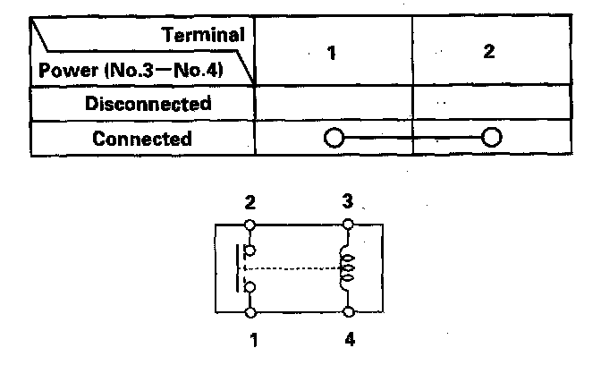 - There should be continuity between the No.1 and No.2 terminals when power and ground are connected to the No.3 and No.4 terminals.