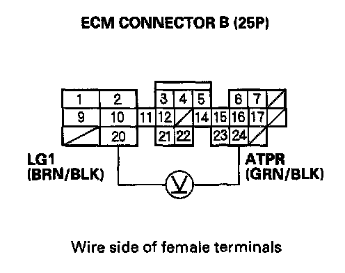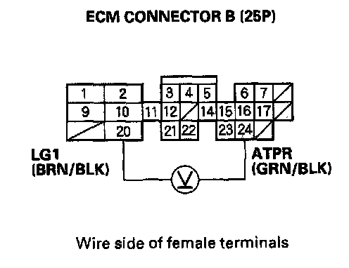18. Measure voltage between ECM connector terminals B20 and B24 with the transmission in [R] position.