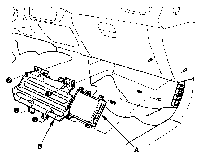 2. Pull the passenger's side carpet back to expose the ECM (A).