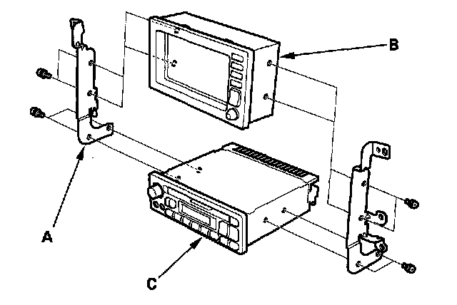 3. Remove the display unit (B) and audio unit (C) from the radio bracket.