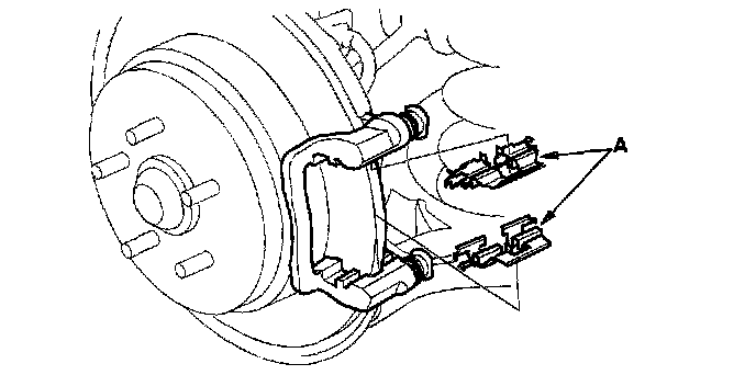 10. Push in the piston (A) so the caliper will fit over the pads. Make sure the piston boot is in position to prevent damaging it when installing the caliper.