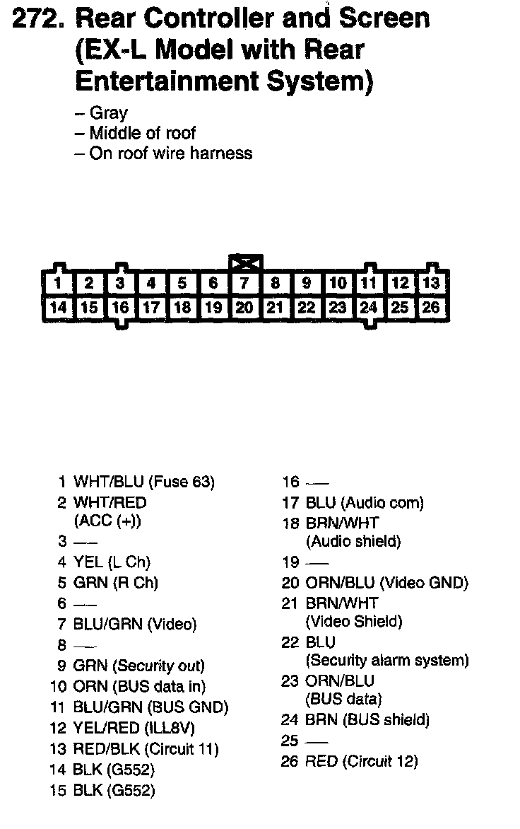 272. Rear Controller And Screen (EX-L Model With Rear Entertainment System):