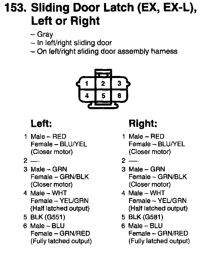 153. Sliding Door Latch (EX, EX-L), Left Or Right: