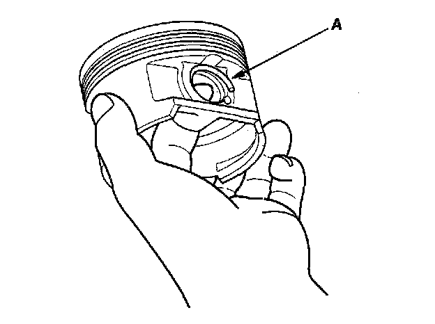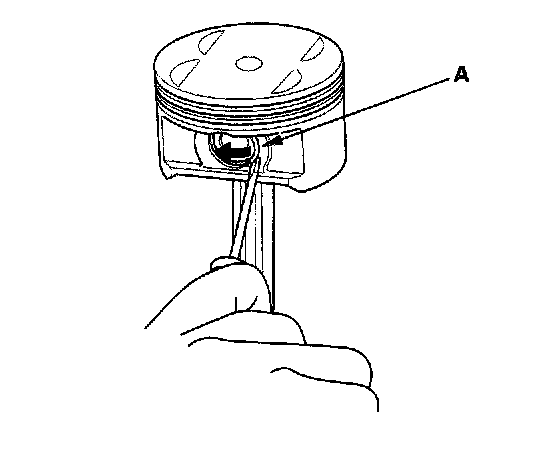 1. Install a piston pin snap ring (A).
