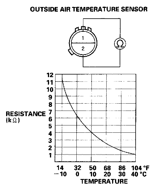 Outside Air Temperature Sensor TestDip the sensor in ice water, and measure the resistance. Then pour hot water on the sensor, and check for a change in resistance.