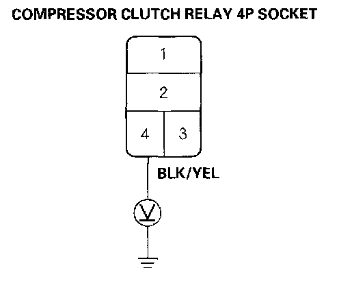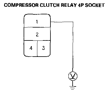 4. Measure the voltage between the No.1 terminal of the compressor clutch relay 4P socket and body ground.