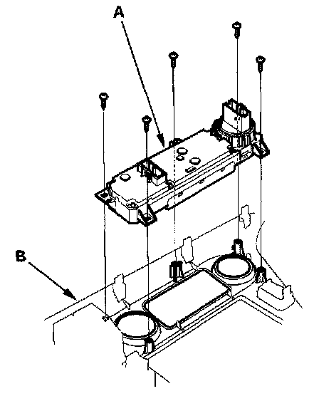 2. Remove the self-tapping screws and the heater control panel (A) from the center panel (B).